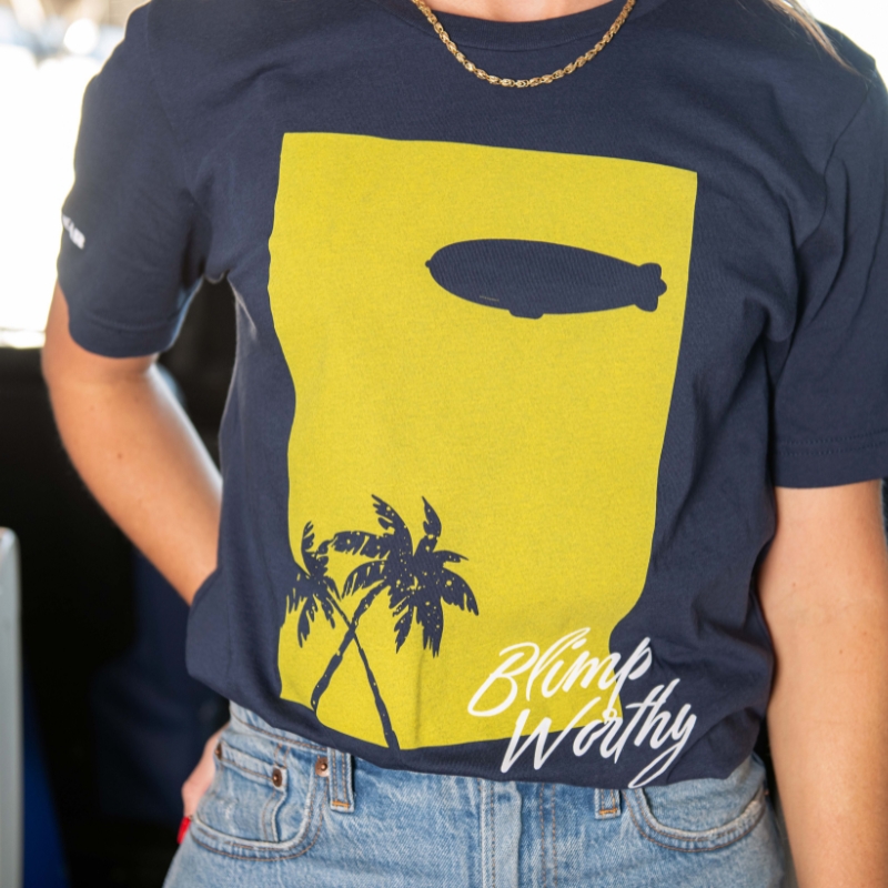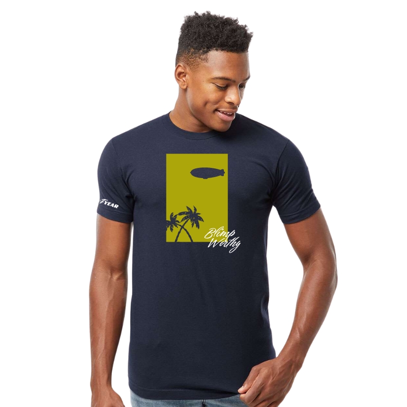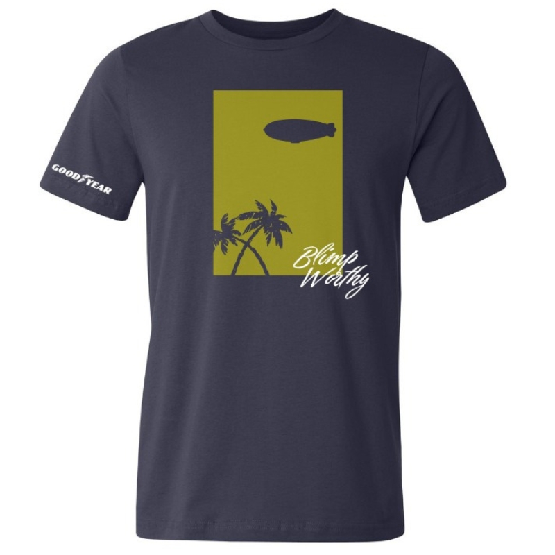 Bring the laid-back spirit of the Goodyear Blimp to your everyday look with the Blimpworthy Palm Trees Tee. Featuring a vibrant vintage-style graphic, this tee is made from 100% Airlume combed and ring-spun cotton for unmatched softness and lasting durability. Designed with comfort in mind, it includes a coverstitched collar and sleeves, shoulder-to-shoulder taping, side seams for structure, and a tear-away label. Perfect for warm days or casual outings, this tee is available in sizes S–3XL.