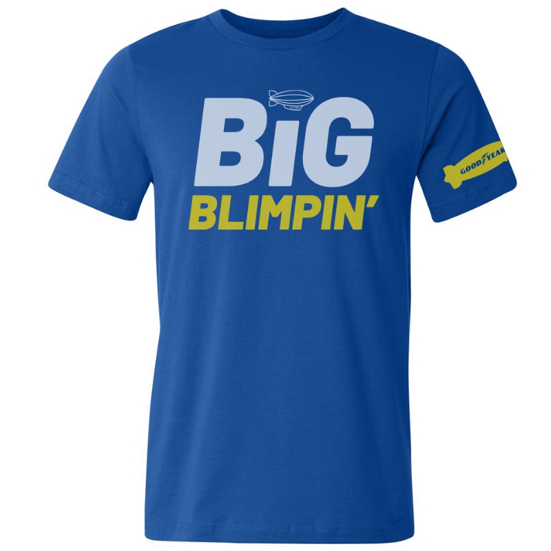 Make a bold statement in the Big Blimpin' Tee, featuring a playful and oversized Goodyear blimp graphic with the phrase “Big Blimpin’” front and center. Crafted for comfort and style, this tee offers a modern retail fit, tear-away label, side seams, and shoulder taping for durability and ease. Whether you're kicking back or turning heads, this shirt delivers big on both vibes and personality. Available in sizes Small to 4XL.